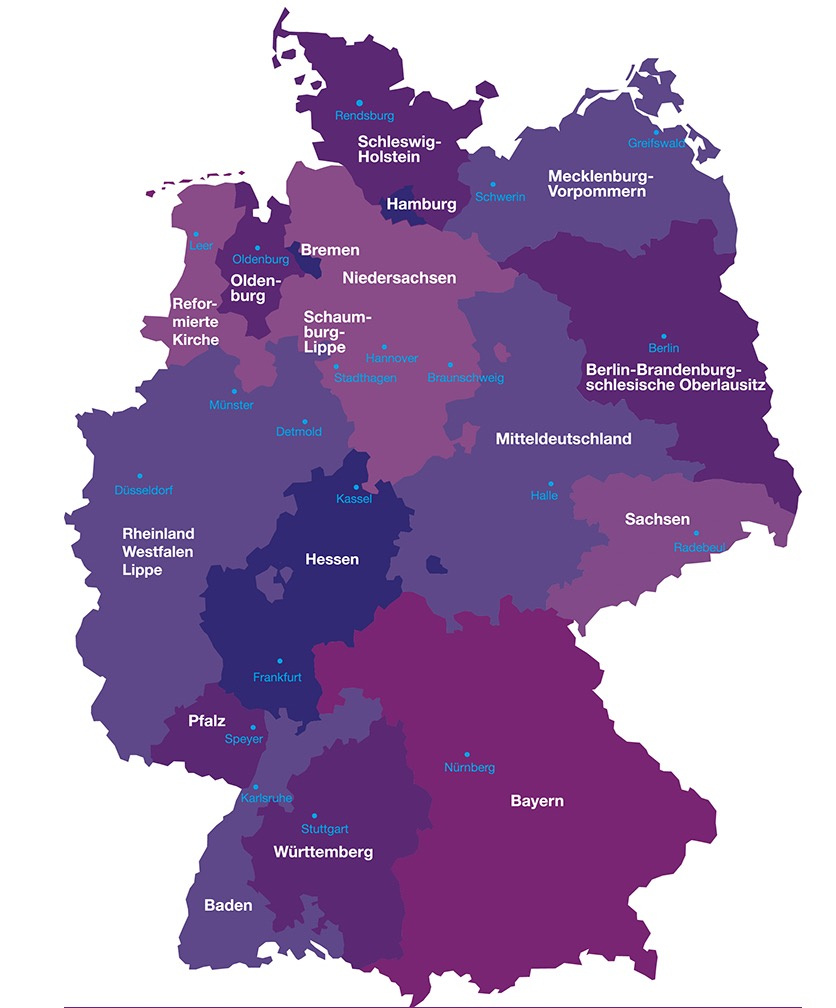 Hier sind die regionalen Dienstgeberverbände in der Diakonie im Überblick dargestellt: